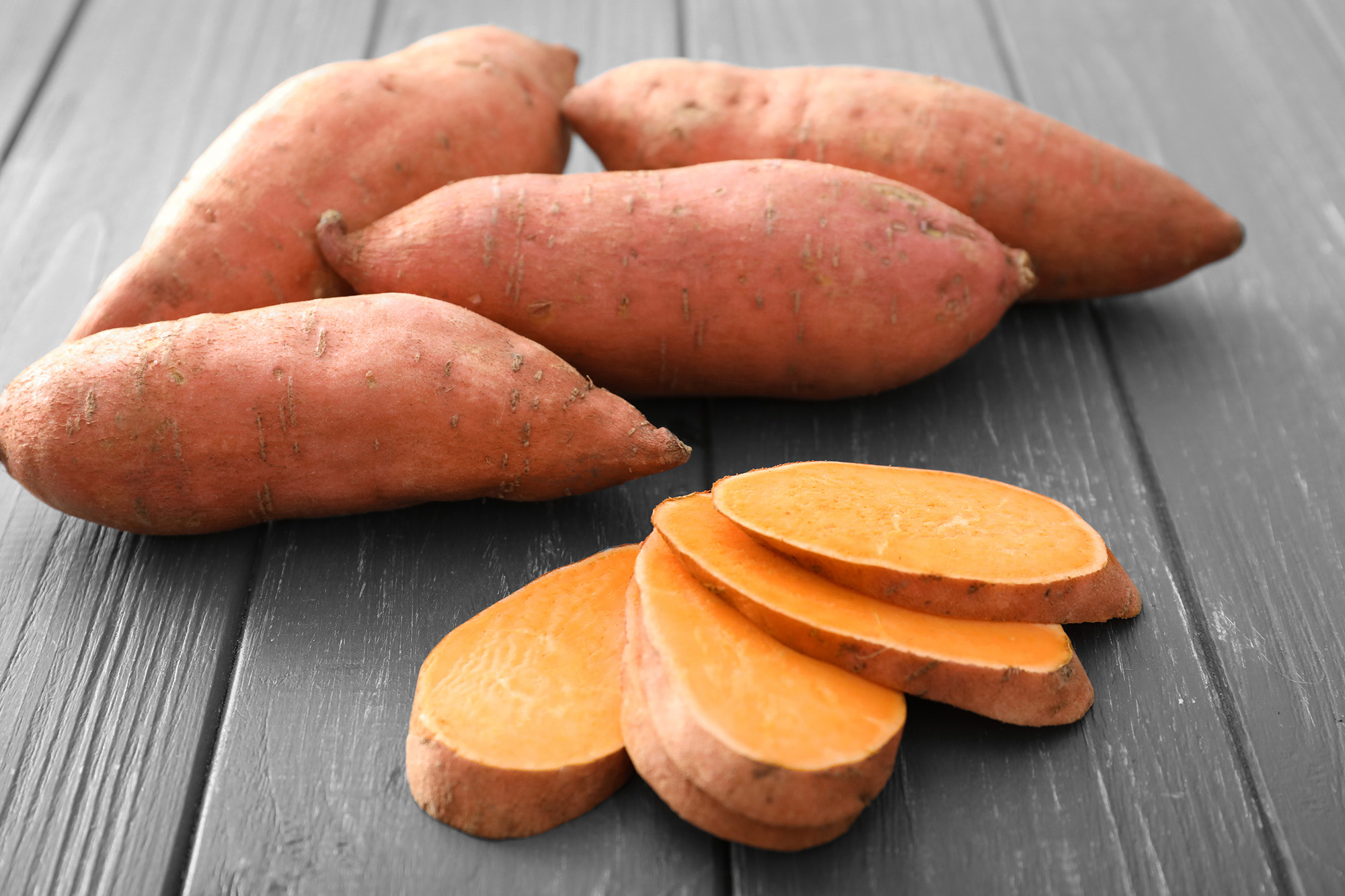 Slatki krumpir nema masnoća, sadrži male količine bjelančevina, a energija mu pretežito potječe od škroba i jednostavnih šećera. Niskokaloričan je i sadrži približno 85 kcal u 100 grama. Sadrži i neprobavljiva vlakna koja su poželjna u prehrani.