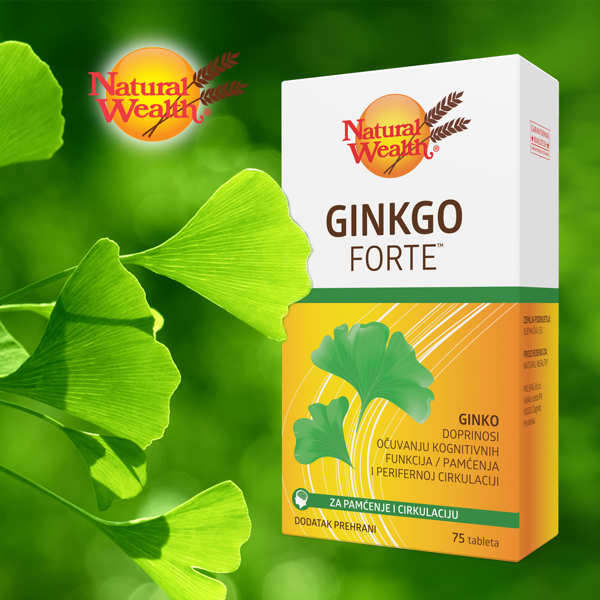 Natural Wealth® Ginkgo Forte™ preporučujemo svima koji žele zaštititi dobru cirkulaciju. Također je preporučljiv za očuvanje spoznajnih funkcija i dobrog pamćenja. Ginko je prirodna pomoć zdravlju osoba srednje i starije dobi i svima kojima su periferna cirkulacija i pamćenje svojevrstan izazov. Redovitom i pravilnom upotrebom ginko može biti koristan za očuvanje periferne cirkulacije, a svojim pozitivnim učinkom na mentalne sposobnosti, poput pamćenja također poboljšava kvalitetu života starijih osoba.