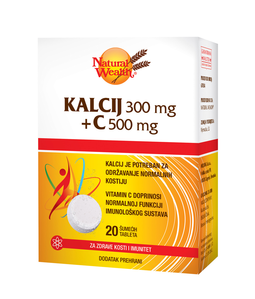Šumeće tablete Natural Wealth® Kalcij 300 mg + vitamin C 500 mg, s obzirom na snažnu dozu C vitamina od 500 mg u jednoj šumećoj tableti, namijenjene su osobama koje žele očuvati zdravlje kostiju a istovremeno zaštititi svoj imunološki sustav.