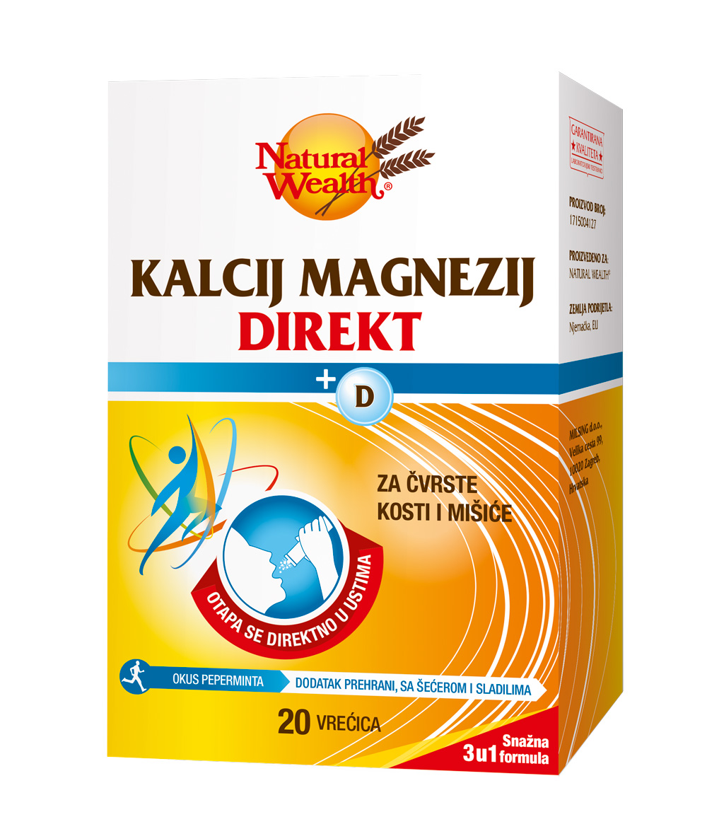 Natural Wealth® Kalcij Magnezij direkt, u obliku granula koje se otapaju direktno u ustima, kombinacija je minerala kalcija i magnezija s vitaminom D u popularnom i vrlo praktičnom obliku granula koje se otapaju direktno u ustima.
