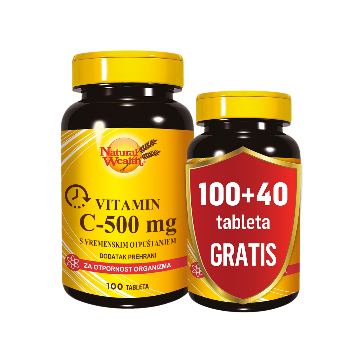 Zahvaljujući formulaciji s produljenim djelovanjem, Vitamin C-500 mg omogućuje postupno oslobađanje vitamina C u tijelu čime se postiže bolja apsorpcija i snažna zaštita tijekom cijelog dana. Osobito se preporučuje starijim osobama i sportašima. Bez glutena, mlijeka/mliječnih proizvoda, šećera, umjetnih boja, aroma, sladila i konzervansa. Pogodno i za vegetarijance/vegane.