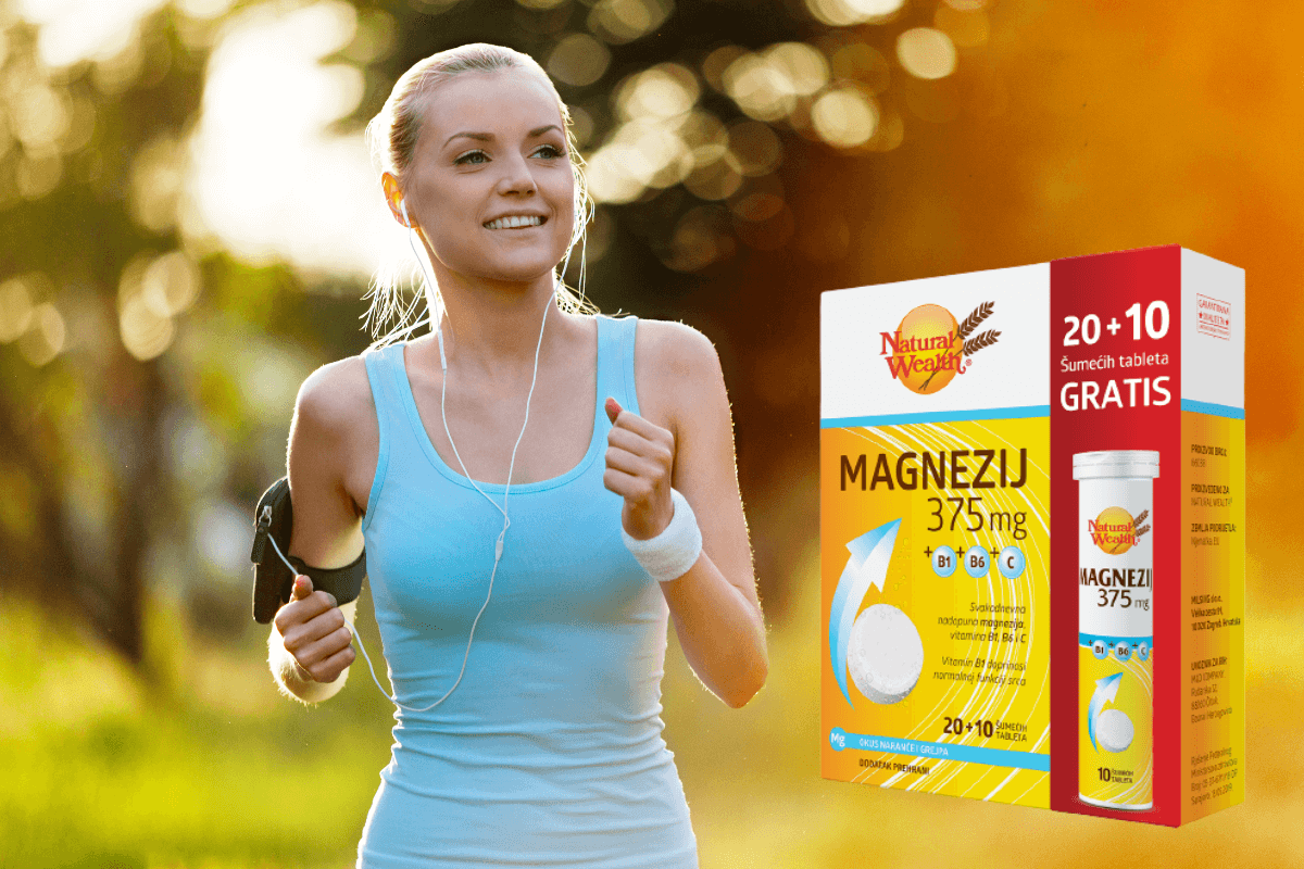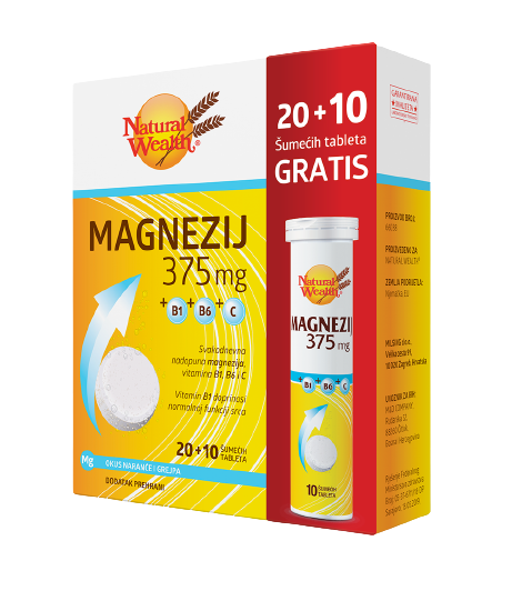 Preporuka iz Natural Wealtha® je Magnezij 375 mg +B1+B6+C koji će osigurati dnevni unos magnezija, ali i vitamina B1, B6 i C. Jeste li znali da upravo vitamin B6 pomaže u boljoj apsorpciji magnezija? Zbog toga je ovaj dvojac idealno uzeti istovremeno.