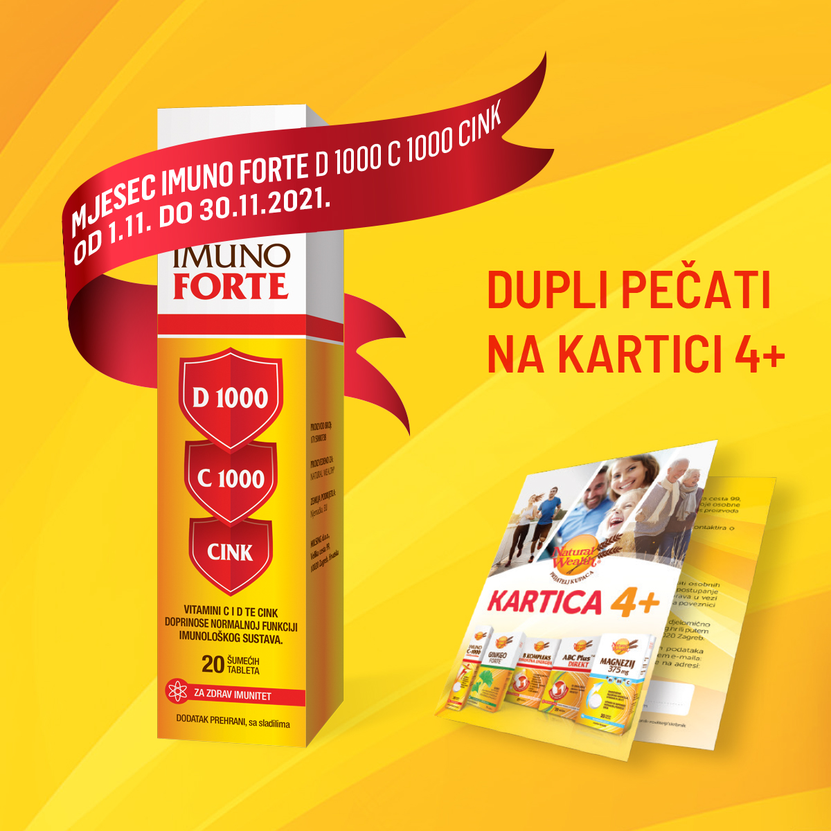 U mjesecu studenom nagrađujemo kupnju proizvoda Natural Wealth® Imuno Forte s duplim pečatima na Kartici 4+