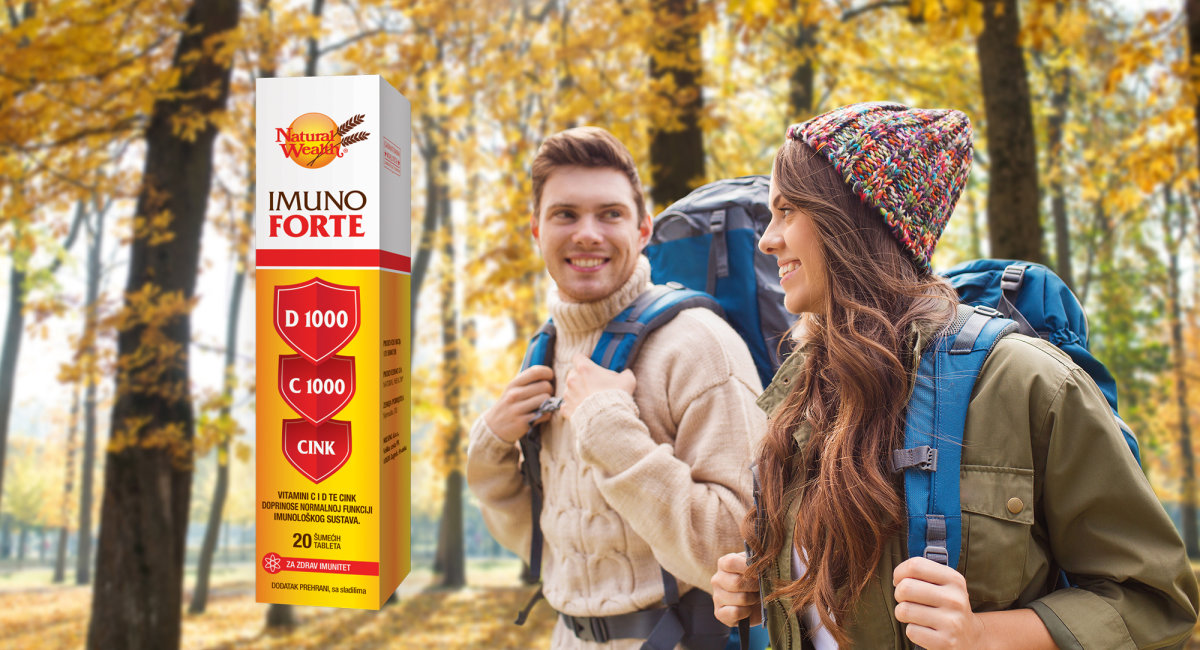 Natural Wealth® Imuno Forte sadrži snažnu kombinaciju ova tri važna sastojka. Svaka šumeća tableta sadrži 1000 I.J. vitamina D, 1000 mg vitamina C i 10 mg cinka koji zajedno doprinose normalnoj funkciji imunološkog sustava.