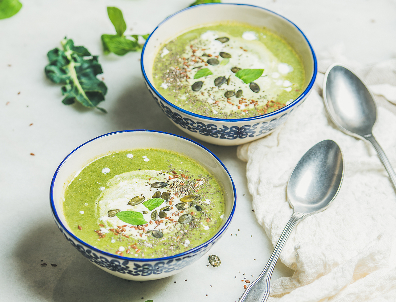 Priprema: Sve sastojke dodati u blender i usitniti do homogene konzistencije. Poslužiti u zdjelici uz dodatak sjemenki bundeve i malo sjeckanih badema.