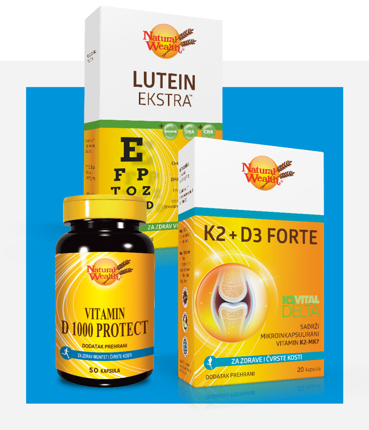 Kalcij, magnezij i vitamin D su vitalni za zdravlje kostiju. Što smo stariji, to je vjerojatnije da imamo nisku razinu vitamina D u organizmu, pogotovo ako ne provodimo mnogo vremena na otvorenom. Redovita tjelovježba i unos oko 1500 mg kalcija dnevno očuvat će kosti zdravima i jakima. Za zdravlje zglobova preporučuje se glukozamina i indijskog tamjanovca. Kombinirani preparati vitamina K2 i D optimizirat će apsorpciju i iskorištenje kalcija bilo podrijetlom iz hrane ili dodataka prehrani. Cimicifuga racemosa smanjuje menopauzalne nelagode, a ginko čuva dobro pamćenje i cirkulaciju. Omega-3 masne kiseline čuvaju zdravlje srca i krvnih žila.